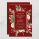 This Holiday party invitation design features a Christmas-themed floral frame and personalizable gold and white text. Eat, drink, and be merry.