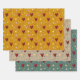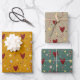 Christmas theme wrapping paper featuring colourful hand-drawn holiday symbols with 3 colour schemes.