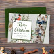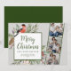 Merry Christmas three photo holiday card features a beautiful watercolor winter foliage illustration with script and serif fonts. This minimal, simple and elegant design is ready for you to customise with your own family photos and message. Change the text or background colour or keep as shown here. Please browse the Merry Christmas Family Photo Card Collection for more designs.