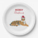 Christmas Tiger Funny Animal with Santa Hat Paper Plate
