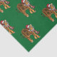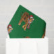 A drawing of a cartoon tiger wearing a Santa Claus hat and a scarf around it's neck.