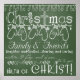 Christmas Time Chalkboard Look poster with various styles of fonts in white on a chalkboard green background. Christmas tree lights, mittens on a string, ornaments, hearts and scrolls, and text that reads "Christmas Family & Friends laughter and smiles...sharing and caring, mistletoe & fudge, smell of pine...gifts to give, Birth of CHRIST!".