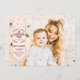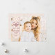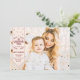 Simple and elegant Christmas greeting card featuring a customisable family picture with a modern ivory banner overlay with lovely burgundy lettering that reads It' Chrismas Time, decorated with greenery and snowflakes.