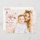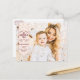 Simple and elegant Christmas Holiday postcard featuring a customizable family picture with a modern ivory banner overlay with fun burgundy lettering that reads It' Chrismas Time, decorated with greenery and lovely snowflakes.