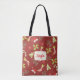 It's that special time of year, Christmas Time. This tote bag features a deep red background with green mistletoe, Christmas trees, and gingerbread men, customise your name inside the design. Place your order today!