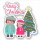 Couple with a Christmas tree is wishing you a Merry Christmas.