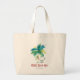 These cute tropical Christmas tote bags feature an island-inspired exotic palm tree and cute holiday Santa. The words "Merry Beach-mas" are set in hand lettered type. Use the template fields to add your personalised greeting. A charming choice for Christmas shopping and gifts for family this holiday season. Small and bulk tote bags available. If you are looking for more Florida designs visit www.zazzle.com/dotellabelle Unique watercolor art and design by Victoria Grigaliunas of Do Tell A Belle.