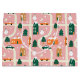Step into the cosy vibes of this holiday town map pattern, showcasing charming houses, Christmas trees, snowmen, and cars driving through snowy streets. A whimsical holiday design perfect for festive projects, gift wrap, or seasonal decor.