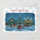 a romantic christmas happy holiday postcard featuring an old town squaire on a winter night. santa clause, a christmas tree & a lot of snow. exclussive by frank glerum art.