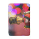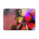 Christmas toy soldier figurine SlipperyJoe gay pride gifts LGBTQIA colourful bokeh lights background vibrant coloured red jacket uniform gold buttons shoulder epaulets cartoonish face artistic black hat gold eagle emblem pink purple yellow red festive atmosphere