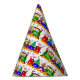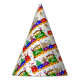 Bright and colourful Christmas party supplies for kids with toy train carrying Santa and friends to spread Holiday Greetings.