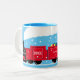 Personalised Christmas train gift mug in red and blue.