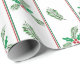 Elegant simple Christmas pattern wrapping paper with red and green stripes, Christmas tree branches and holly berries