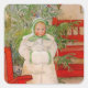 Cute little girl in a furry white coat, hat and muff.  Standing in front of a Christmas tree with a solemn expression on her face. Vintage holiday image by Swedish artist Carl Larsson.