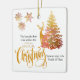 This elegant Christmas ornament for your holiday pregnancy announcement is a great keepsake and easy to personalise for grandparents, aunts etc. The design features a christmas tree and a sweet deer, snowflakes and handlettered typography in gold. The pregnancy announcement wording reads "the best gifts don't come under a tree, wishing you a Magical Christmas from our soon to be Family of Three". The other side of the ornament has your congratulations message, names and baby due date. Please browse my store for more designs.