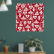 Christmas Tree and Gingerbread Man Pattern on Red Poster