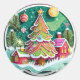This festive design features a beautifully adorned Christmas tree surrounded by charming huts, evoking a cosy winter wonderland atmosphere.