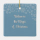 at christmass as a hanging decration for the chritmass tree.. its white porcline or cramic but very well made with added photo on one side.. also has a lovley red bag to keep it in.. execlent printed text in bold and black stands out well aganst the blue background of the photo.