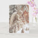 Christmas card features a beautiful angel with arms full of Christmas tree ornaments. She is surrounded by Christmas trees. Customise the greeting and the message inside the card to your liking.