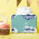 Christmas Tree Artistic Blue Merry Script Wrapping Paper. Holiday design with a decorated artistic Christmas tree and trendy white script. You can change any text on the wrapping paper.