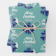 Christmas Tree Artistic Blue Merry Script Wrapping Paper Sheet