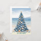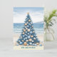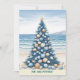 A sweet exotic Christmas design with a Christmas tree made of shells, with the ocean and mountains in the background. You can personalize this invitation with your own details.