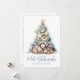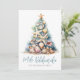 Get into the holiday spirit with this unique Christmas card featuring a Christmas tree made of shells and starfish. Perfect for sending beachy holiday wishes, this card is ideal for anyone living in tropical places like Florida, Hawaii, or the Bahamas, or for those who simply adore the beach look. The tree, topped with a starfish, is a delightful blend of blue and green hues, reminiscent of underwater coral. Set on a sandy base, this card has a charming rustic watercolor style. The combination of simple fonts and script typography gives it a casual yet elegant feel.