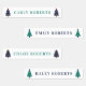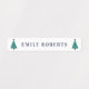 Blue and Green Christmas Tree Waterproof Name Labels with decorated pine trees on each end. Personalised Name Label Stickers in blue and green.