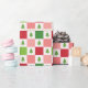 Red, Pink and green christmas tree chequered print wrapping paper.