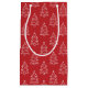 A gift bag built with a white Christmas tree pattern on a dark red background. Customize the dark red background color, pattern size among other options.