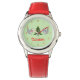 This awesome Christmas watch features a digital art image of a pair of cute squirrels decorating a Christmas tree with brightly coloured hazelnuts. The tree is green with a yellow star on top and each squirrel is holding a Hazelnut to eat and wearing a scarf to keep warm in the cold winter. There is custom text so you can personalise this design with a name.