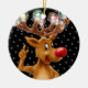 Round Christmas tree decoration Rudolph illuminated. Black grey.
