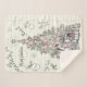 This blanket features a drawing of a Christmas tree with a rocking horse done on notebook paper. With pink and black ink.