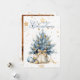Christmas Tree Gold Blue Calligraphy Watercolor Holiday Card