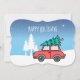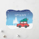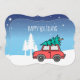 Custom sketched little red car with freshly chopped Christmas tree on top.