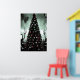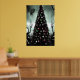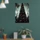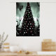 A large decorated Christmas tree in the horror forest, two small black trees standing next to the Christmas tree on both side. This is a AI generated art.