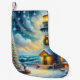 Christmas Tree Lighthouse Nautical Coastal Blue Small Christmas Stocking