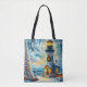 Christmas Tree Lighthouse Nautical Coastal Blue Tote Bag