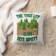 A fun and cute the tree lot is my hot spot slogan Christmas tree fun cartoon slogan design merry Xmas cartoon style happy holidays unique retro art happy fun celebration party seasonal digital illustration vintage aesthetic fun winter holiday motto design deluxe unique home décor throw pillow cushion. Get a cool Christmas party cartoon throw pillow today.