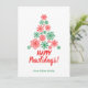 Happy pawlidays, paw print snowflakes in red and green colours forming Christmas tree.Ideal design for dog lovers,pet care, dog grooming saloon and much more.Editable colours on front of the card.