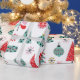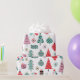 Blue, red and pink Christmas tree pattern wrapping paper.