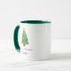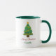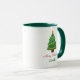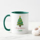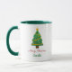 A mug with a Christmas Tree and its garlands, its baubles and its star at the top. It comes with a customisable text "Merry Christmas" and a forename. So you could use it for your coffee at the office during next Xmas time or offer it!