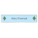 A festive table runner for mushroomy meals. The ends have a cartoon mushroom decorated like a Christmas tree. The middle has the punny message "Merry Christmush" on ice blue.
