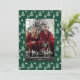 Personalised Holiday Photo Card Whimsical Watercolor Christmas Tree, Wine & Cheese on green