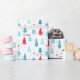 Cute and modern Christmas wrapping paper featuring a Christmas tree pattern in blue, red and pink on the white background in the simple Nordic style. Easily personalise the text. - Kate Eden Art
