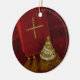The Christmas tree is a symbol for the true gift of the baby Jesus. Red, gold, and white colours make a rich display. The cross is a Christian symbol. . I wish you a merry Christmas in royal red with golden tassels. Photo taken in my studio.