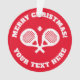 Christmas tree ornament gift for padel player. Personalised with your own funny quote, name or greeting. Custom colour background. Upload your own picture on the back. Great for padel lovers, fans, tennis player, coach, team, club, mum, dad, coworker, friends etc. Crossed rackets and ball logo.