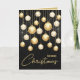 Folded business holiday greeting cards feature gold and white Christmas tree ornaments on black with the greeting Merry Christmas on the front and your personalised message, company name and logo printed on the inside. MORE styles in our collection.