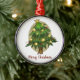 Oval ornament with red ribbon hanger. Original Christmas tree design with red "Merry Christmas!" message beneath.