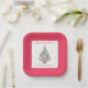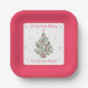 Christmas Tree Party Red and White Paper Plates - 7" - designed your family name and a festive Christmas Tree with Christmas stars on a white background with red trim. The text includes: Christmas Party and Your Family Name. To personalise, simply insert your text into our easy template, replacing the sample.